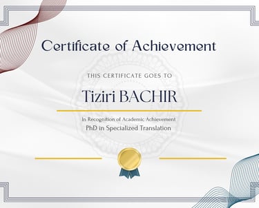 My name is Tiziri BACHIR, I am a freelance EN<>FR<>AR Technical, Medical and legal Translator.